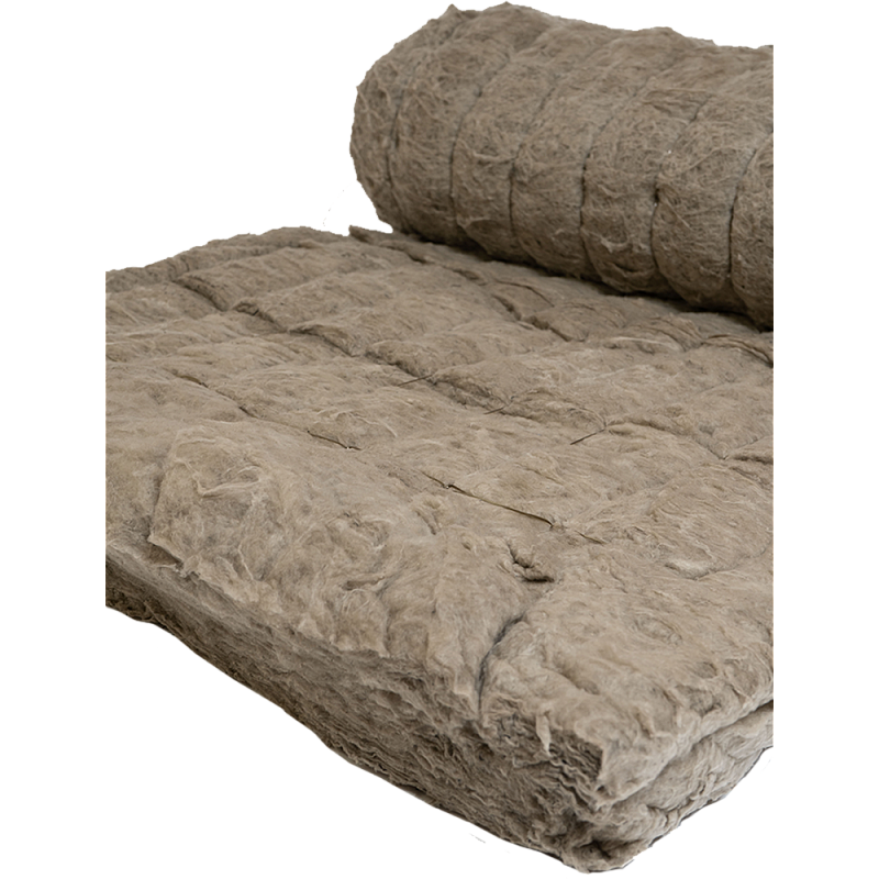 Мат из базальтовых микротонких волокон без использования связующего с диаметром волокна до 1 мкм и длиной волокна от 52 мм до 70 мм, прошит базальтовым ровингом, является высокотемпературной теплоизоляцией