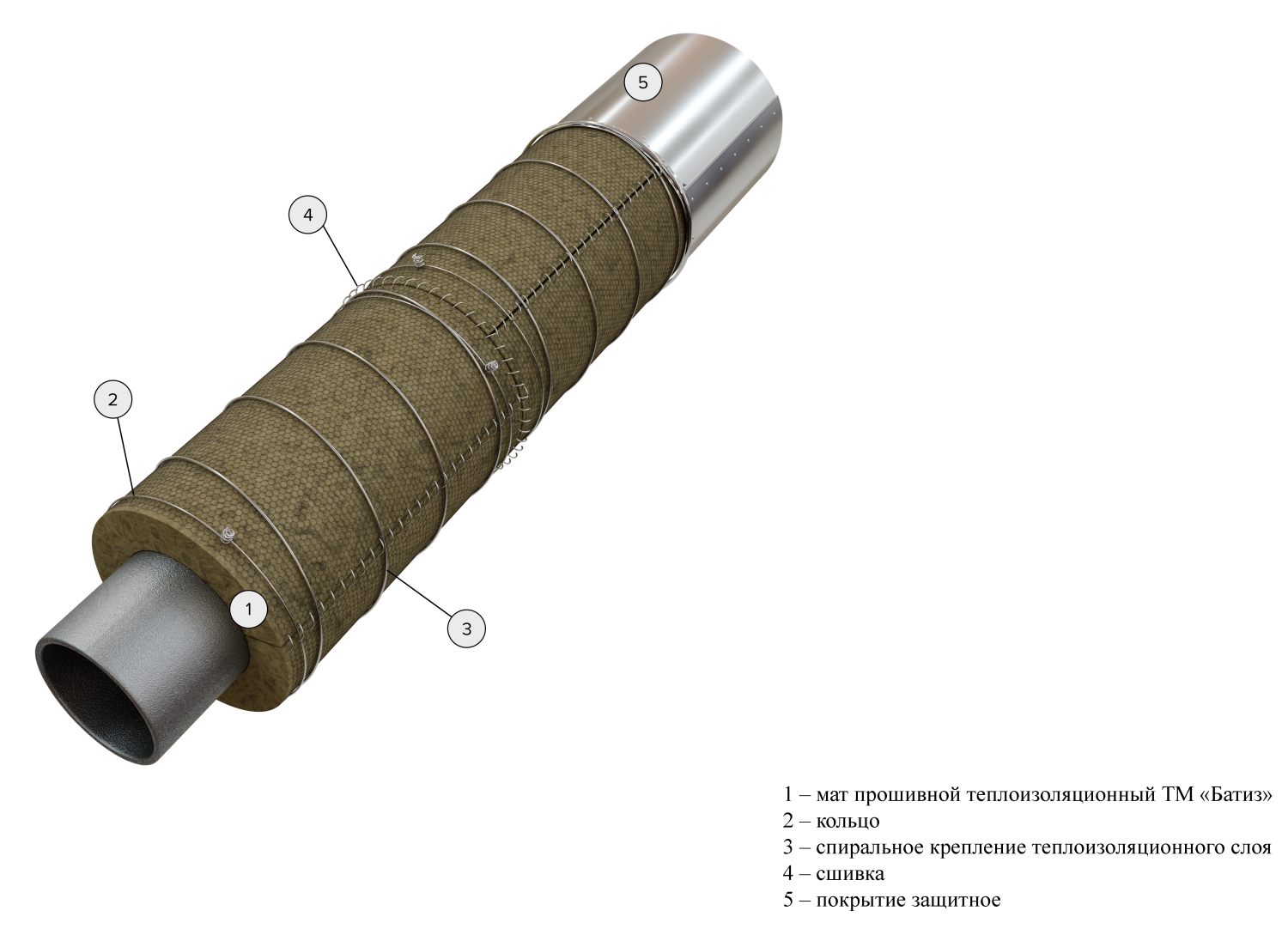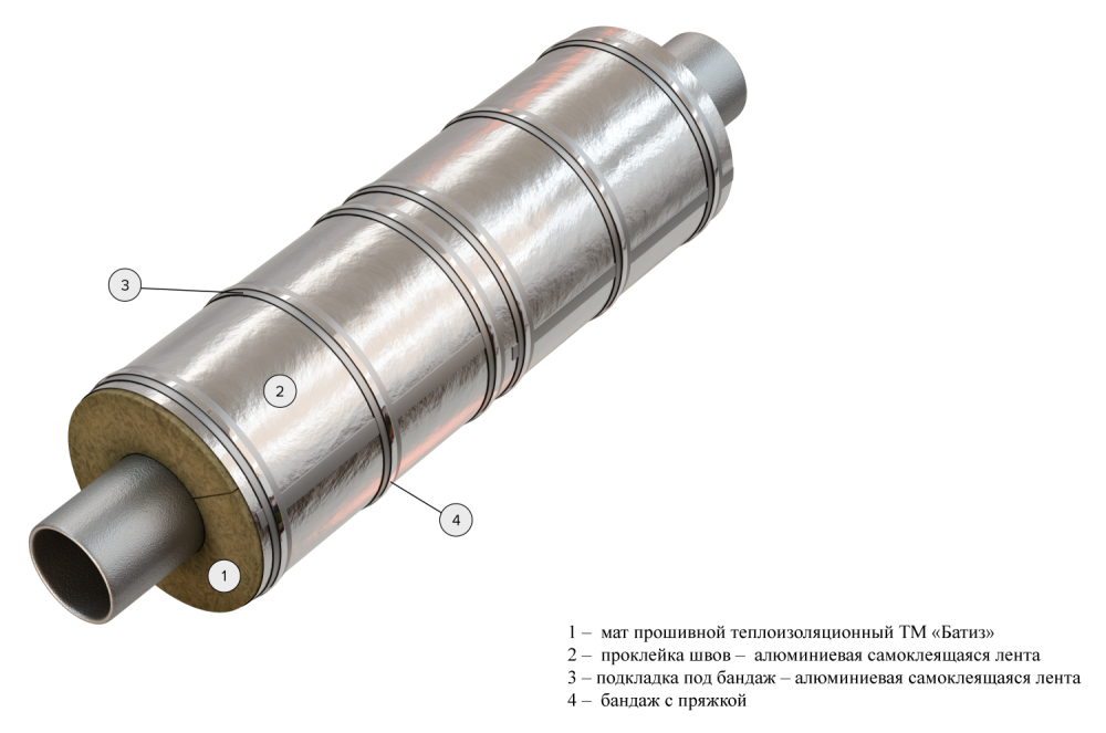 Для трубопроводов диаметром 45 мм и более рекомендовано применять маты базальтовые ТМ «БАТИЗ».Для трубопроводов наружным диаметром от 45 мм до 159 мм включительно предусматривается крепление теплоизоляционного слоя: