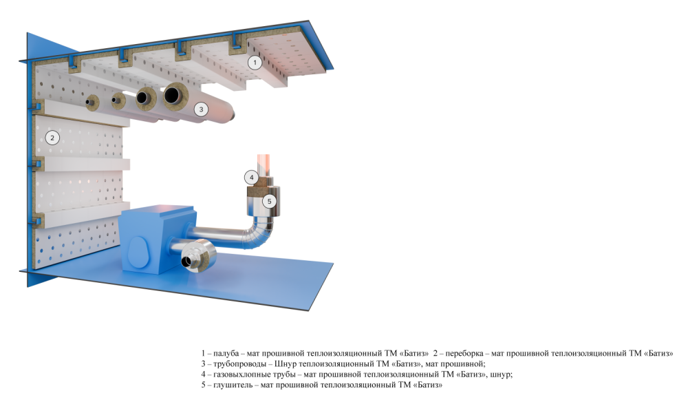 Изоляция судовых газоходов — это важнейшая задача для обеспечения безопасности команды на судне. С помощью материалов ТМ «БАТИЗ» вы получите надежно изолированный газоход, защитите машинное отделение от дополнительных притоков тепла и шума.